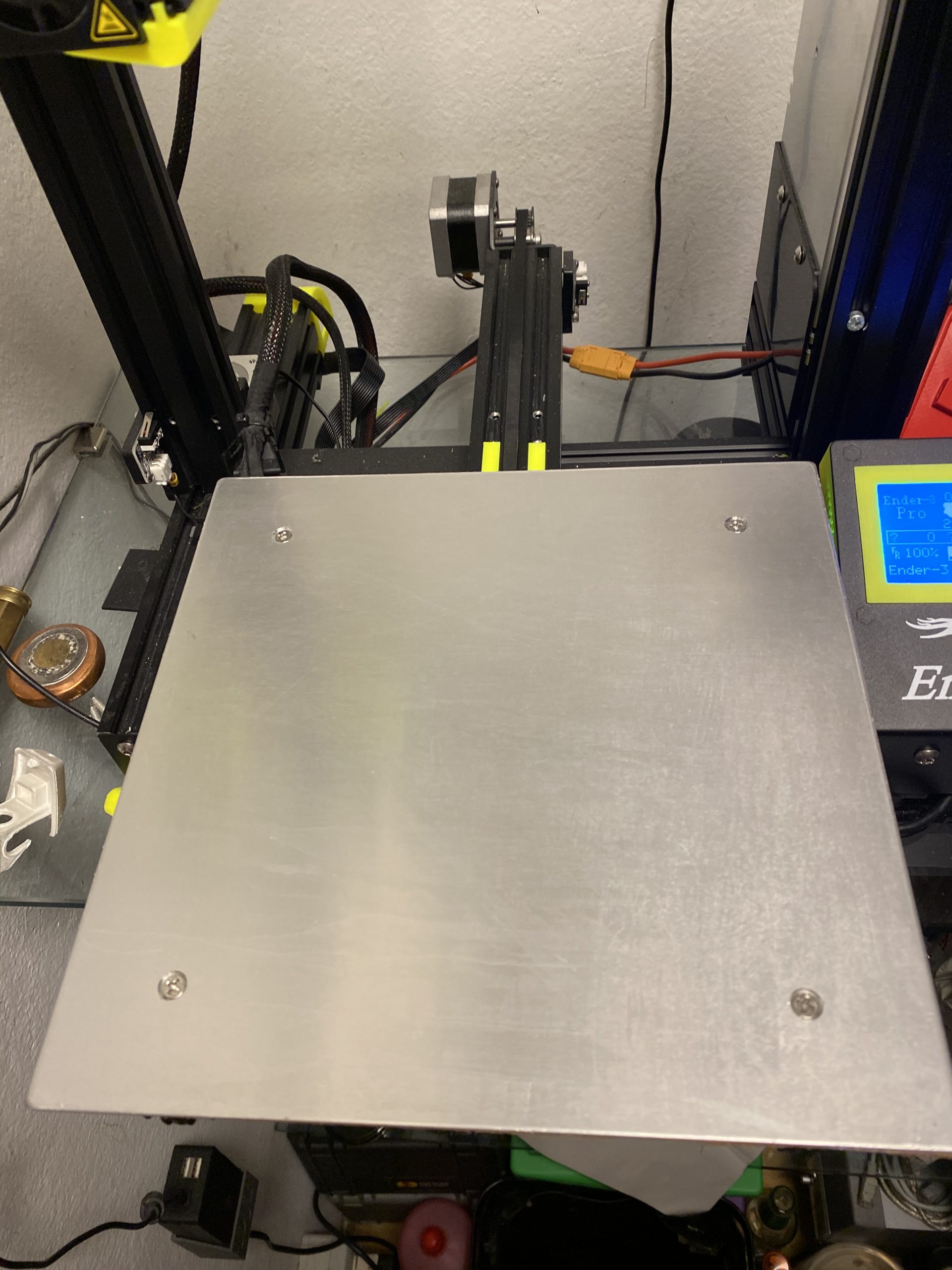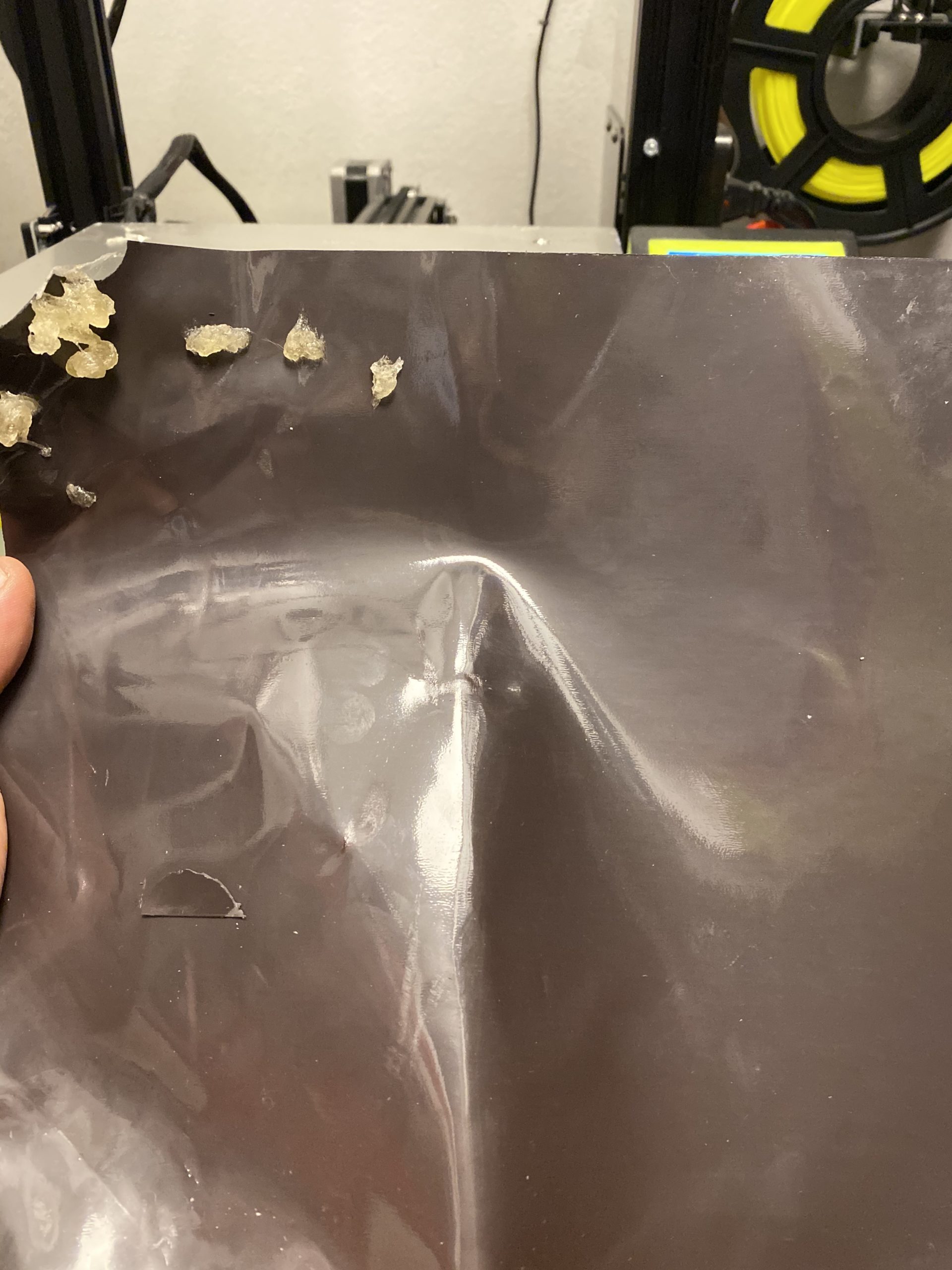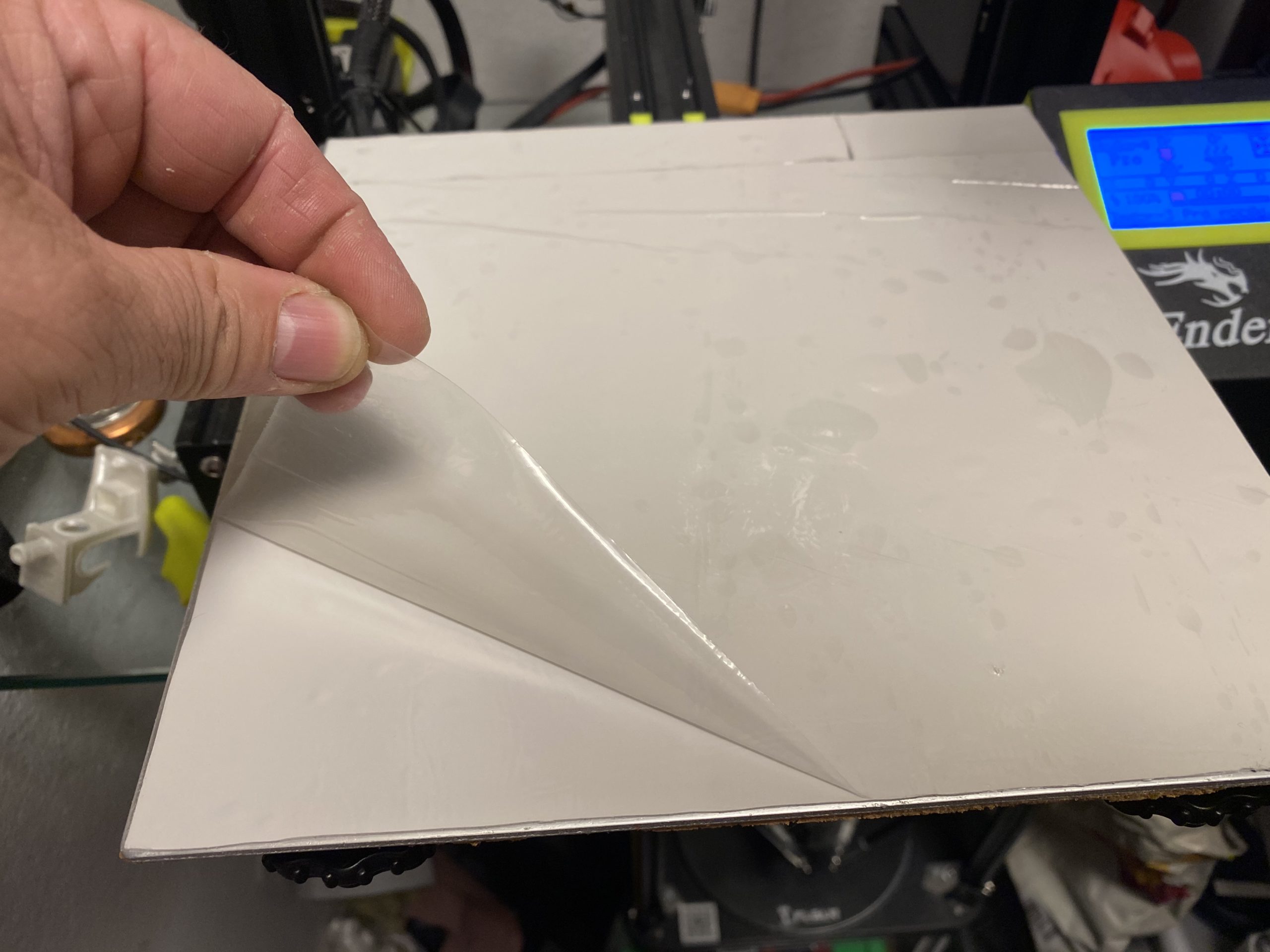 Time to throw these awaySilicone PadHeated the bed up to 120 C. to remove the original magnetic bed.Scraping the glue off while the bed was hotmagnetic bed completely removedall clean and ready to goTaking off protective plastic after installationGlass installed no clips neededcloseup of the layers. Cork for heat retention,the Aluminum bed, silicone mat and glass bed. The heating of the bed is just as uneven as it was before but at least now I don’t need clips anymore.